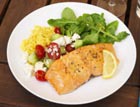 Потребуется 1 тушка лосося (или любая другая рыба семейства лососевых, или ваша любимая рыбка с чешуей) весом около 1кг или немного более, 1,5-2 кг крупной соли, 1 лимон, 1 веточка розмарина, 3 веточки майорана, 2 листочка шалфея, 1 лавровый лист (все пряные травы можно заменить сухой смесью прованских трав), 2 ст. ложки оливкового масла, перец по вкусу.