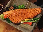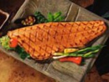 Потребуется: 800 г филе лосося, 1 средняя тыква, 1 средний кабачок, 2 помидора, маслины, 2 ст. ложки оливкового масла, 1 ч. ложка лимонной цедры.