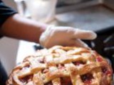Для начинки: 2 стакана консервированной вишни (без косточек), 2 стакана кураги, нарезанной соломкой, 5 крупных яблок, очищенных от кожицы и нарезанных тонкими кружочками, 1 стакан сахара.