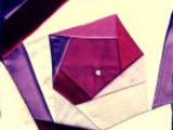 4. Возьмите следующий лоскут прямоугольной формы, положите его лицевой стороной вниз, совмещая край с другой гранью пятиугольника и накрыв предыдущий лоскут. Двигайтесь по часовой стрелке, если вы правша. Для левшей удобнее, наверно, против часовой стрелки.