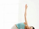 Далее растяжка. Стоя, потянитесь руками наверх. Соедините руки и наклонитесь влево, задержитесь, теперь вправо, задержитесь.