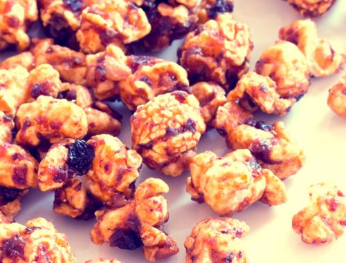 Растопите сливочное масло на водяной бане, добавьте орехи, сухофрукты и геркулес. Аккуратно вбейте в теплую массу яйца, добавьте разрыхлитель, соду, соль, ваниль, сахар и муку. Замесите эластичное тесто и оставьте его в теплом месте на 20-25 минут. Сформируйте из овсяной массы печенья и выпекайте их в течение 20 минут в духовке при температуре 180-200°С.