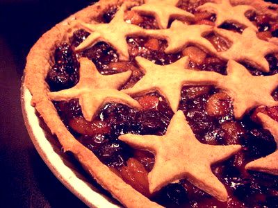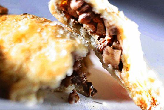 300 г готового слоеного теста, 2 свежих яйца, 200 г сушеной кураги, 100 г сушеных слив, 100 г белого изюма, 100 г сушеных яблок, 200 г коричневого сахара, 50 г миндаля, 12 ст. л. сливочного масла, 2 ч. л. рома или спирта, корица на кончике ножа.