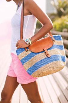 Сумочки из плетеной соломки – это не только пляжный аксессуар, их вполне можно носить и в городе, только удачно подберите под нее наряд и украшения.