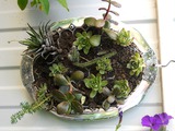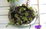 В нашем случае это каменная роза, у которой множество маленьких розочек на горке из камушков и мха. Также агава, которая растёт не очень быстро. При желании палитру растений можно конечно разнообразить, в магазинах много разновидностей этих растений. Держим картину в горизонтальном положении до укоренения растений.