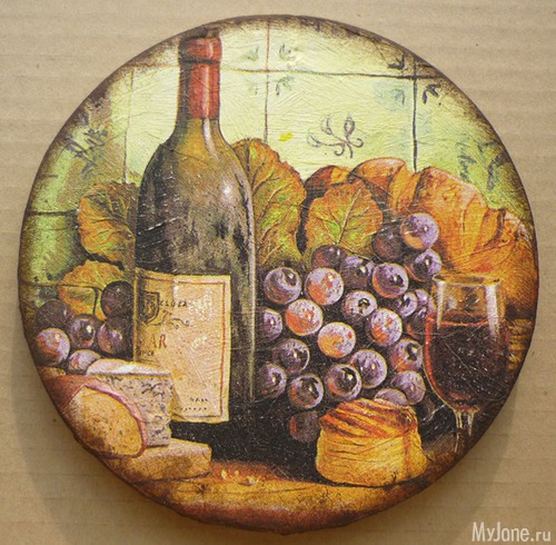 Давайте сегодня сделаем предмет, который не только украсит интерьер вашей кухни, но и будет иметь практическую пользу – это будет вешалка для прихваток. Впрочем, это может быть вешалка для чего угодно, и не только для кухни, но и для прихожей, детской, веранды и т.д., всё зависит от того, какой рисунок салфетки для декупажа вы выберете.