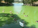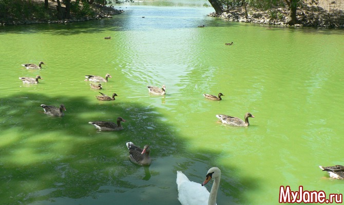 Посреди зоопарка находится живописный пруд, на котором плавает огромное количество птиц: уток, журавлей, гусей, куликов и других.