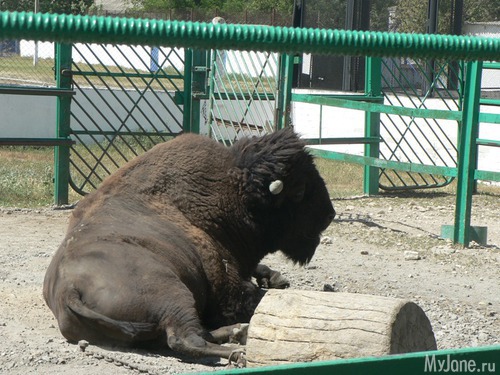 Мое воображение, основываясь на обрывочных знаниях о заповеднике, рисовало стада диких буйволов, рассекающих степь и мчащихся нам навстречу, как только мы пересечем границу заповедных мест. Каково же было мое удивление, когда, проехав по девственной степи до самого поселка Аскания-Нова, мы не встретили ни одного животного! Выехав по указателям на окраину поселка, мы нашли здесь зоопарк с просторными вольерами под открытым небом, в которых в основном были представлены различные виды парнокопытных, собранных со всех континентов: бизоны, сайгаки, лани, туркменские куланы, ослы, олени, муфлоны, верблюды, антилопы, зебры, лошади Пржевальского.
