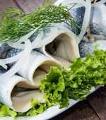 Сельдь отделить от костей, нарезать на порционные кусочки.