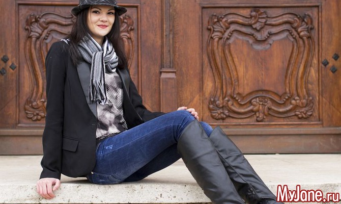 5. Если вы хотите сочетать ботфорты с джинсами, то тщательно подойдите к выбору последних. Джинсы должны быть узкими по всей длине либо зауженными книзу, плотно облегать ногу, а их нижняя окаемка не должна быть плотной, желательно даже отсутствие строчки на ней. Идеально подойдут джинсы-скинни. Также отдайте предпочтение лаконичным моделям без лишнего декора в виде стразов, пайеток и бусин.