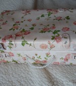Выполняем декупаж. Для этого, клеем ПВА, разведенным наполовину водой, приклеиваем вырезанные фрагменты, используя плоскую синтетическую кисть. Кистью с клеем проводим поверх салфетки, т.е. вначале сухой фрагмент прикладываем к сухой поверхности и только потом промазываем сверху клеем, двигаясь от центра к краям.