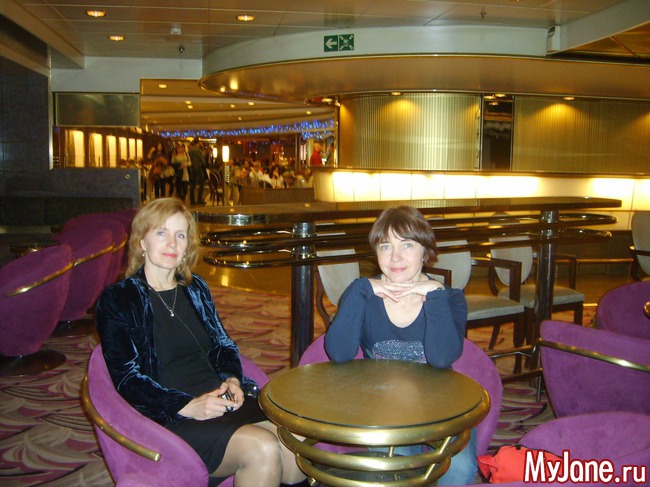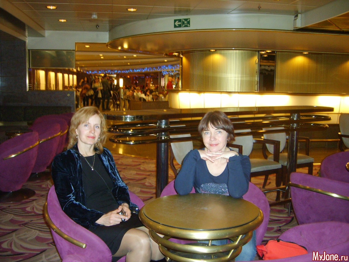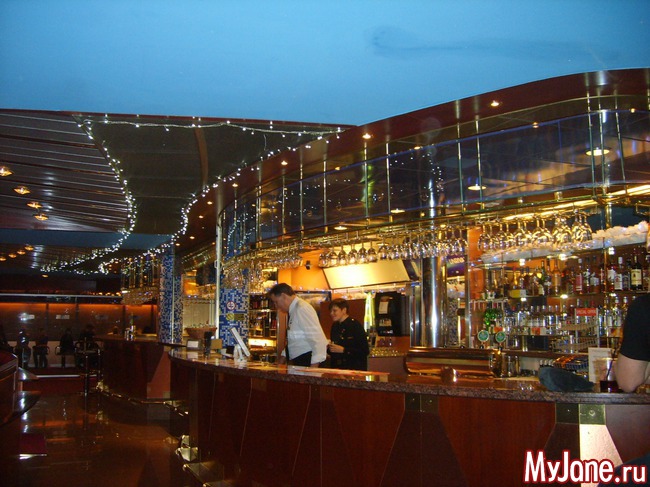 Каждый пассажир мог выбрать отдых или развлечения на свой вкус: в одном зале можно было посидеть за чашечкой или рюмочкой под саксофонные импровизации, в другом – послушать кантри, в третьем – популярную музыку (не хочу называть попсой, так как уровень исполнения довольно высок). Сразу несколько дискотек – выбирай по вкусу. И бары-бары-бары, коктейли, пиво, мороженое. Магазины со всякой мелочёвкой, особенно полно парфюма и косметики «с именем». Ну, и спиртного – просто море, богатейший ассортимент. А чтоб заманить праздно шатающегося пассажира – пожалуйте на дегустацию - налито на дне стаканчика. Отведав «волшебного зелья», пассажир тут же идет за добавкой к полке с бутылками и покупает полный экземпляр – ведь дегустация проводится у этих самых манящих полок. Сразу отмечу - несмотря на обилие спиртного особо пьяных я почти не видела, в основном публика «навеселе» или «чуть-чуть».