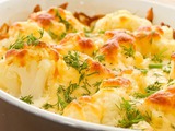 Из расчета на 4 порции потребуется: по 1 небольшому кочану брокколи и цветной капусты, 50 г сливочного масла, 50 г муки, 1,5 стакана молока, по щепотке молотого мускатного ореха и перца, 120 г тертого сыра, 50 г нарезанного бекона, соль по вкусу.