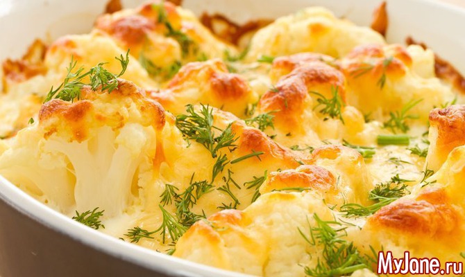 Капусту выложить в смазанную маслом форму, залить соусом, посыпать оставшимся сыром и кусочками бекона. Запекать в духовке 20-25 минут при температуре 180 градусов до золотистой корочки.