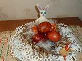 13. Кладем яйца в гнездо, рядом можно посадить зайца (в моём случае - заяц из войлока).
