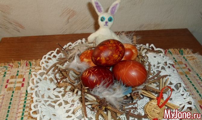 Окраска яиц – давняя традиция. Я приверженец самого простого, экологичного и безопасного окрашивания яиц – в луковой шелухе. А чтоб немного разнообразить результат, прибегнем к некоторым хитростям.