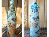 После просушки ваша ваза готова. Вы можете остановиться на этом этапе, а можете еще немного декорировать горлышко бутылки лентами, бусинами, пластмассовыми цветами.