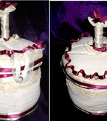 Нитками окручиваем лекало и, когда будет достаточно объема, разрезаем между деталями острыми ножницами намотанное, предварительно протянув там же длинную нитку, сложенную в несколько раз. Это необходимо для того, чтобы крепко стянуть нити и потом с помощью длинной нитки закрепить на основе.