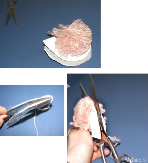 Нам понадобится лекало, по которому будут собираться помпоны, а их густота и величина будут зависеть от размера лекала и от того, сколько витков намотаем.