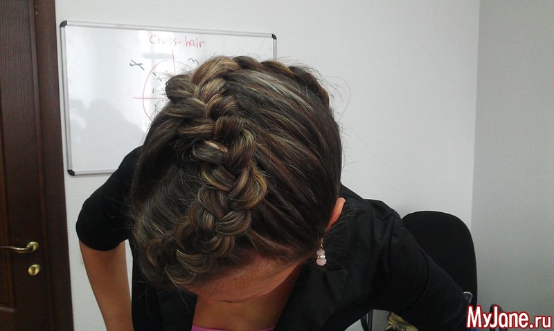 Если на каком-то этапе плетения вы понимаете, что волос недостает, закрепляйте прическу мелкими резиночками, подобранными в тон цвета волос, и шпильками различной длины.