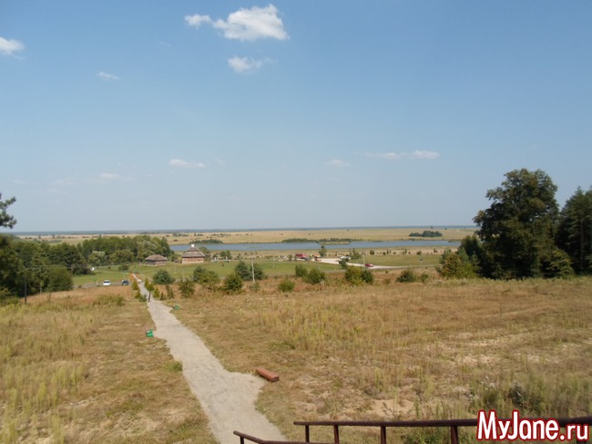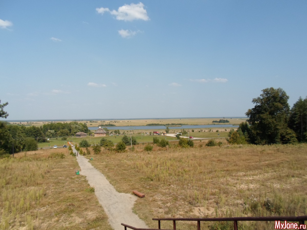 Замок расположен на возвышенности, а внизу синеет озеро, образовавшееся в месте выборки песка для его строительства.