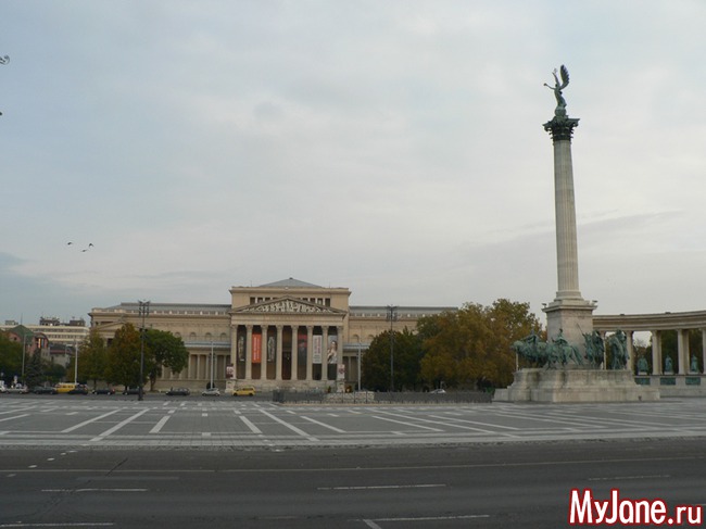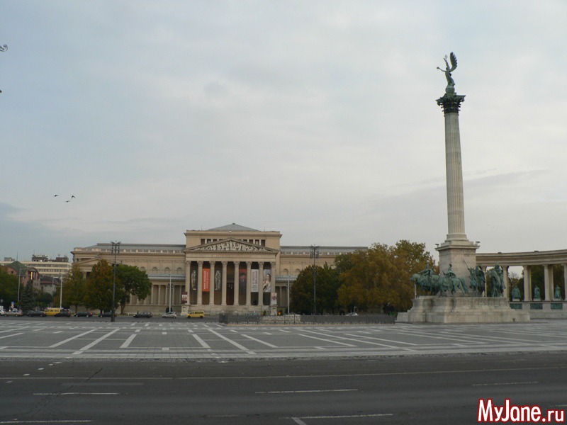 С последнего-то мы и начнем наше знакомство с Будапештом. Для этого отправимся в Городской парк. Именно у его входа расположена помпезная Площадь Героев. Ее центральная часть – это колонна высотой 36 м, на которой Архангел Гавриил держит Святую Корону и Апостольский двойной крест. Слева и справа от колонны расположена величественная круговая колоннада, между колоннами которой встроены скульптуры знаковых фигур в венгерской истории. К Площади Героев примыкают здания Музея изобразительных искусств и Выставочного зала.