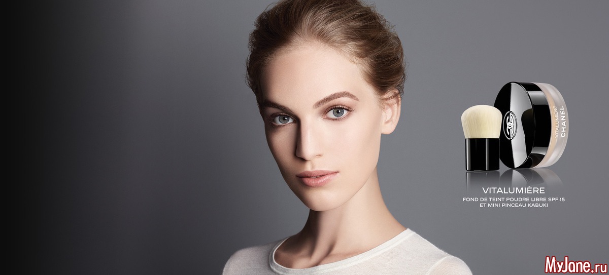 Элегантный и интеллигентный look от фирмы Chanel, образец естественного макияжа. Скулы слегка тонированы румянами.