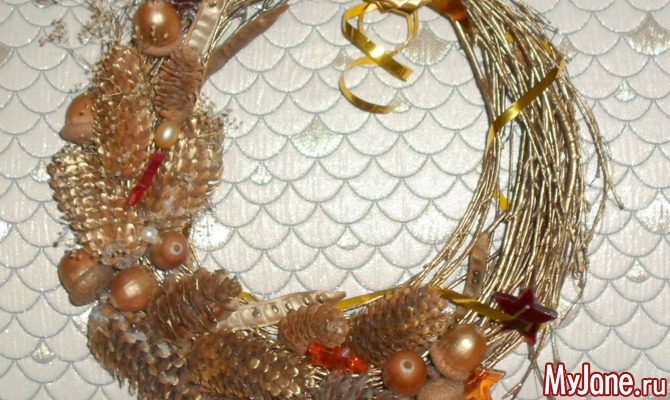 Такой венок, кроме всего прочего, источает приятный хвойный аромат, так как на многих еловых шишках застыли капельки смолы.