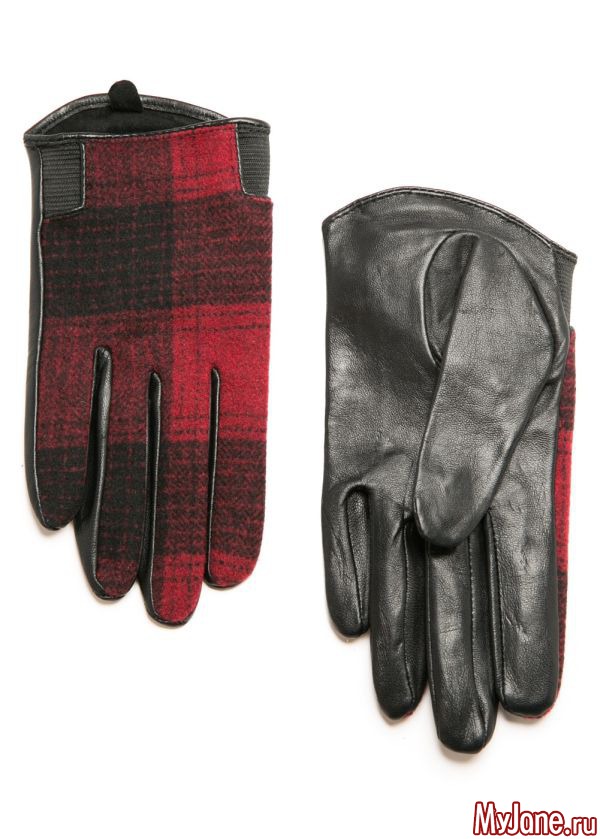 Ниже вы видите модель в спортивном стиле, чем-то напоминающую автомобильные перчатки. Они выполнены из мягкой шерстяной ткани в шотландскую клетку в сочетании с кожей. Такие перчатки могут стать главным цветовым акцентом образа. Если подобрать к ним вязаную шапочку в тон, получится стильный гарнитур.