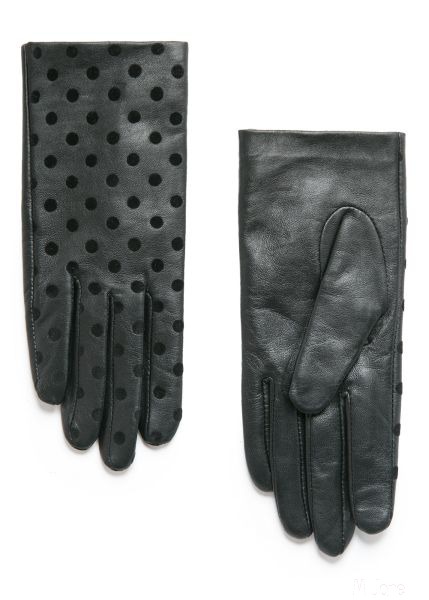 А вот вариант для женщин, предпочитающих элегантный стиль в одежде: перчатки в горошек. Комбинация кожи и замши.