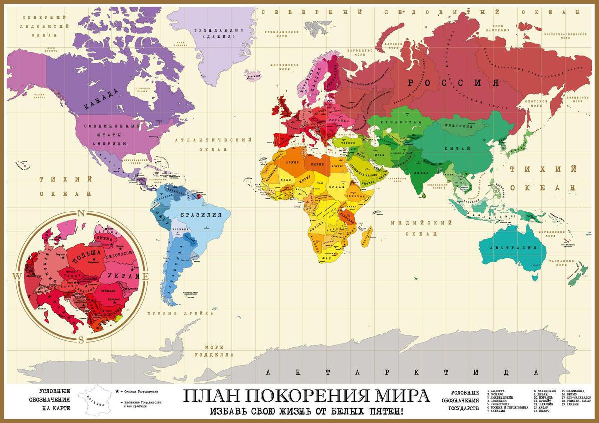 Если вы знаете о том, что знакомый вами любитель познавать неизвестное плюс ко всему любит получать оригинальные подарки, то порадуйте его скретч-картой под названием «План покорения мира». Она станет не только путеводителем в дальние края, но и отличной возможностью сохранить память о далеких путешествиях.