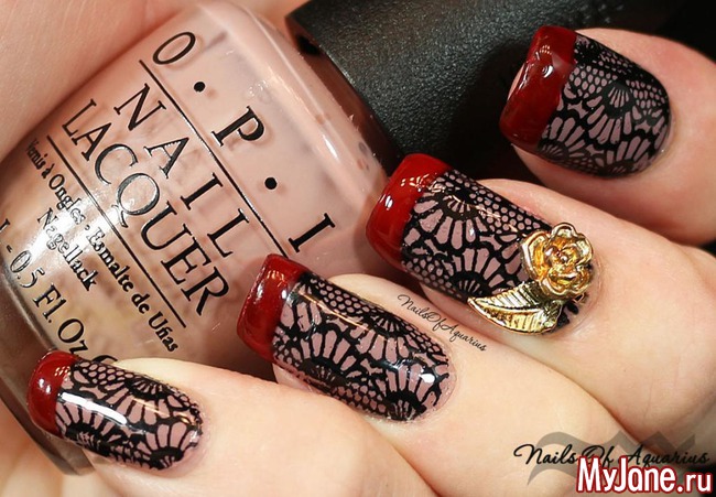 Можно найти уже готовый фотодизайн с имитацией вуали, а можно опять же собрать его по частям. Кружева встречаются среди слайдеров очень часто, потому вам останется только подобрать фоновый лак. Не забудьте, что он должен быть слегка затемнен, потому вам понадобится как минимум два лака, один из которых будет темным, но полупрозрачным.