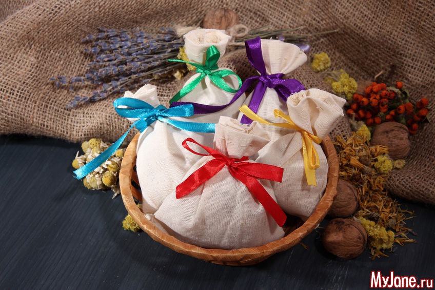 После того, как все выбранные для саше ингредиенты хорошенько высушены, их измельчают в порошок и укладывают в симпатичные маленькие мешочки, которые можно сшить самостоятельно.