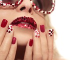 Необязательно рисовать что-то на ногтях, чтобы отдать дань празднику, достаточно использовать в маникюре правильные цвета, а в День Святого Валентина - это красный и розовый. И раз у нас есть целых два цвета, можно с ними поиграть. Например, средний и безымянный покрыть розовым лаком, а остальные - красным. И наоборот. Можно поэкспериментировать с французским маникюром. Или все ногти покрыть розовым лаком, а красным добавить узкую продольную полоску в середине. Это визуально удлиннит ногти. На полоску можно посадить два-три страза.