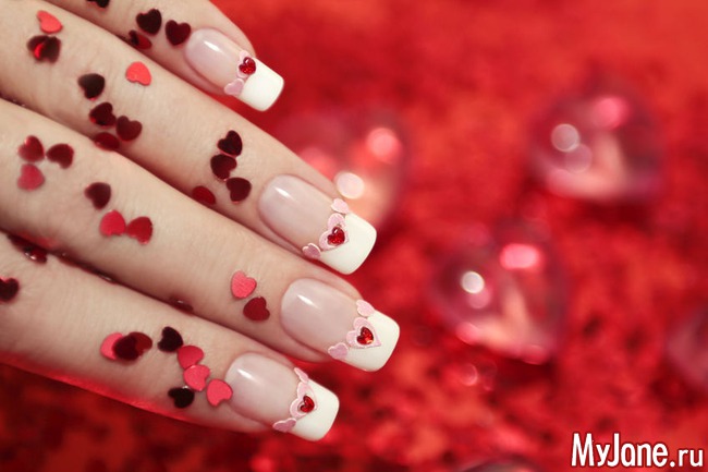 Девушка сделала себе ногти на 14 февраля, что бы внести кусочек праздничной атмосферы этого праздника. Приятно было смотреть на её пальчики которые и так красивые и нежные, а вообще подобный маникюр в этой статье нашел allwomens . ru/42960-manikjur-na-14-fevralja..