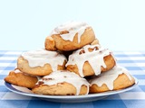 Готовые булочки смажьте глазурью. Готовить ее несложно: смешайте 4 ст. ложки горячего молока с 2 ст. ложками сахара и поварите пару минут. Когда булочки остынут, нанесите на них глазурь.