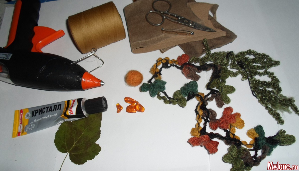 подходящие бусинки или другие элементы (я взяла несколько бусин из янтаря, шарик из шерсти, бисер);