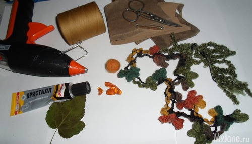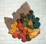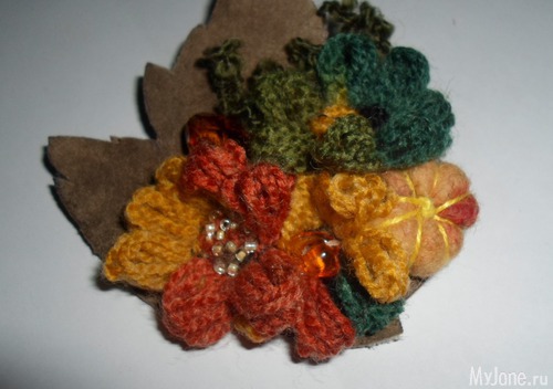 Однажды в магазине для рукодельниц я увидела коробку с различными мотками ниток и пряжи, а рядом стояла табличка «Распродажа». Если честно, я совершенно не представляю, что вяжут из такой пряжи, может быть, какие-то сногсшибательные шарфики… Мне показалась интересной фактура, понравилась природная цветовая гамма, а также привлекла распродажная цена. Не удержалась и купила парочку мотков. Пока дошла домой, придумала несколько идей по применению пряжи. Одна из идей - сделать брошку.