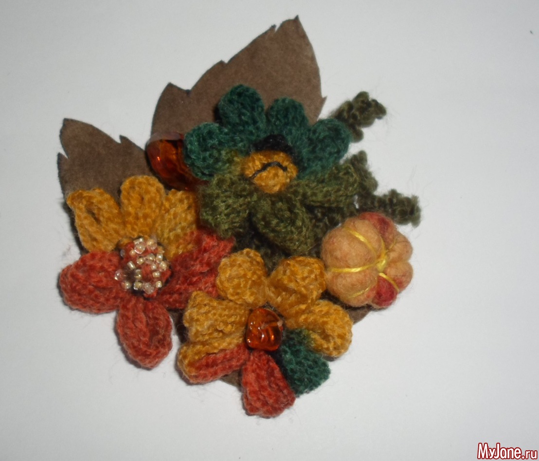 Брошь из замши и фактурной пряжи. Мастер-класс