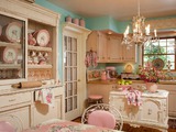 Неотъемлемым атрибутом интерьера шебби шик является посуда. Она тоже должна быть выполнена под старину - с округлыми формами, волнистыми линиями, изогнутыми ручками. Причем ручки чашек, кофейников, сахарниц настолько тоненькие, что их боязно взять в руки.