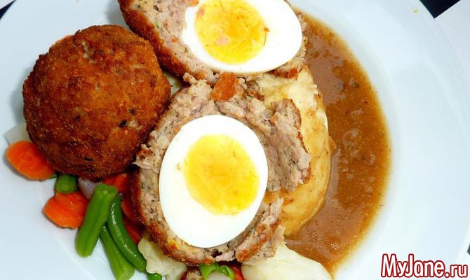 Есть одно сытное и вкусное блюдо, очень популярное у англичан. Это яйца по-шотландски. Их готовят на ужин или берут с собой на пикник.