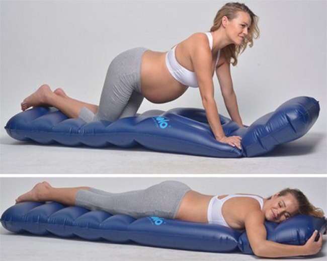 В-третьих, настоящей находкой для комфортного отдыха и сна беременной являются надувные матрасы со специальным отверстием в них. Они позволяют спать будущим мамам на животе даже на больших сроках беременности. Для этого просто необходимо надуть две воздушные камеры, из которых состоит чудо-матрас, и разместить свой живот в отверстии таким образом, чтобы бедра расположились на выступающем канте. В такой позе можно спокойно отдыхать, плавая в бассейне, валяясь на пляже, просматривая любимую телепередачу дома или просто дремать.