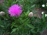 Народные названия растения - маралий корень, маралова трава, большеголовик сафлоровидный, рапонтикум сафлоровидный, стемаканта сафлоровидная.