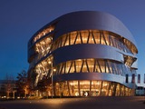 Здание этого музея само по себе является выдающимся архитектурным сооружением. Однажды увидев, его запоминаешь навсегда. Оно символически представляет собой гигантский автомобильный трек, сделанный вверх по спирали. Глядя на это здание, ты как бы слышишь рев моторов и чувствуешь сумасшедшую скорость, с которой мимо тебя проносится гоночные автомобили.