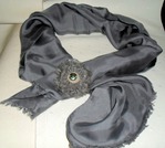 Очень кстати у меня оказался серый шелковый шарфик. Одна брошь останется у меня, а остальные унесет с собой Маша, которая была в этом процессе главным дизайнером.