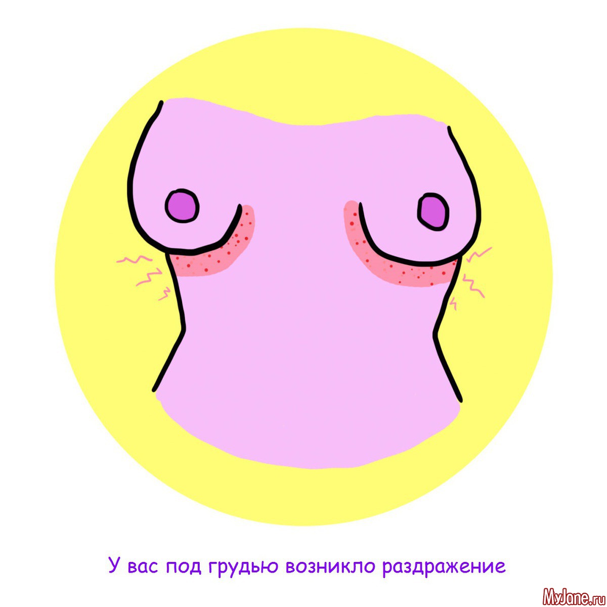 Еще одна вероятная причина – у вас большой объем груди и кожа под молочными железами не дышит, появляются опрелости. Такое часто случается летом в жару или если вы носите плотную зимнюю одежду. Восстановить естественный цвет и состояние кожи могут кортикостероидные кремы и мази. Применять их нужно строго по рецепту врача. Помощь специалиста вам понадобится и для того, чтобы правильно определить объем груди и подобрать хорошее белье.