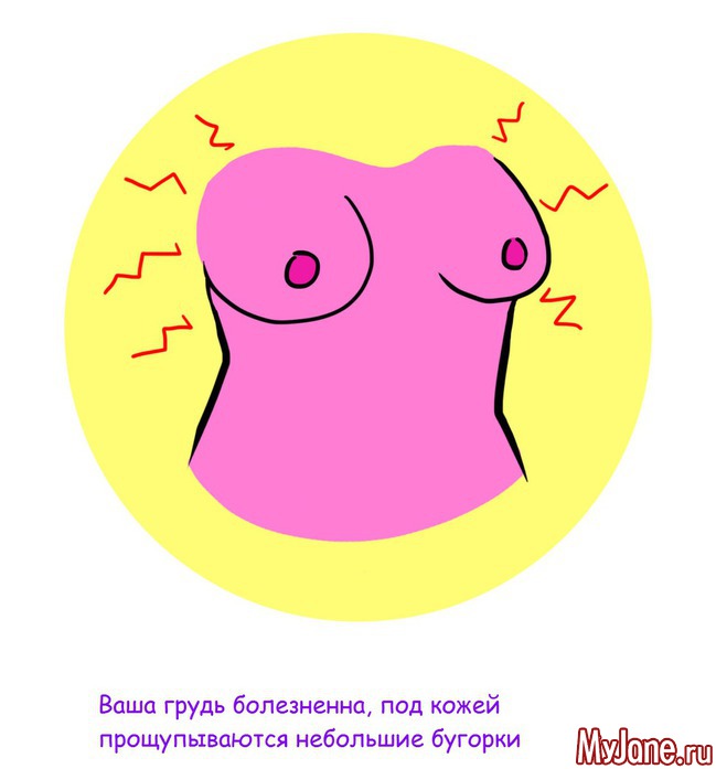 12. Ваша грудь болезненна, под кожей прощупываются небольшие уплотнения