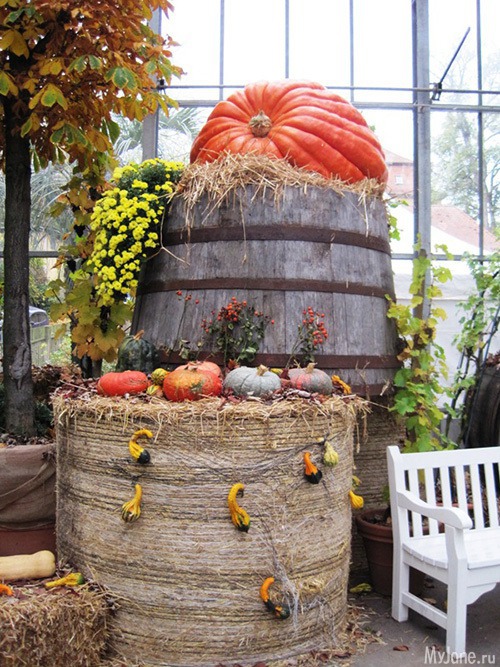 На снимке, который вы видите ниже, дорога, ведущая к дворцу по бокам выложена тыквами.
