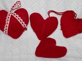 6. По желанию декорируем сердечки тесьмой, пуговками или руликами из обрезков трикотажа, пришиваем подвесы. Кстати, подвес можно пришить на этапе пошива самого сердечка, положив его внутрь сердечка и вшить края в шов стачивания. При выворачивании подвес окажется снаружи.