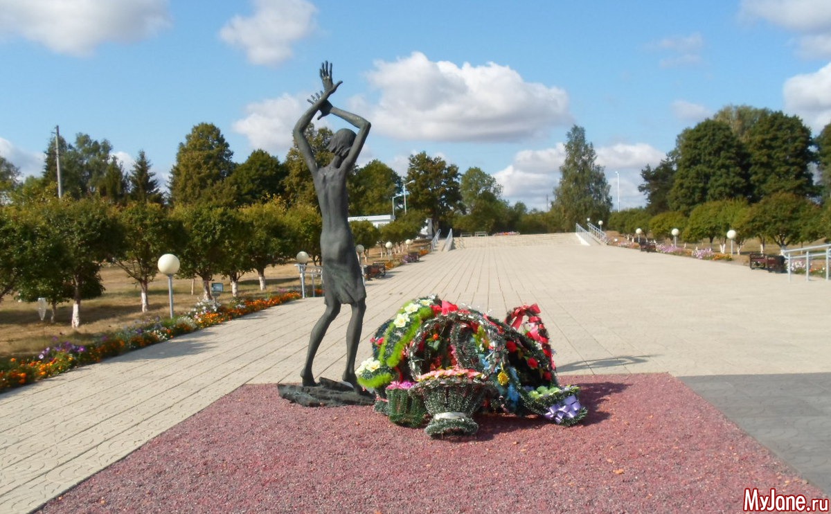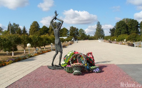 В поселке Красный Берег воздвигнут мемориал, посвященный всем детям, у которых война похитила детство. Мемориал расположен в яблоневом саду, именно здесь в годы второй мировой войны действовал детский концентрационный лагерь. Фашисты насильно отнимали детей у родителей окрестных районов и использовали их в качестве доноров для раненых немецких офицеров. Кстати, в старинной усадьбе Козел-Поклевских, о которой я расскажу во второй части, в годы Великой Отечественной войны находился военный госпиталь, именно по этой причине рядом был размещен детский концлагерь, «для удобства»… После заборов крови детей отправляли в Германию в качестве бесплатной рабочей силы. Тех, кто выживал…